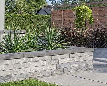 Un muret de jardin en béton est une structure solide utilisée pour créer des limites ou des soutènements dans un jardin. Il est fabriqué à partir de blocs de béton, ce qui le rend robuste et durable, idéal pour résister à l'érosion et stabiliser les terrains en pente. Les murets en béton peuvent également être décoratifs, ajoutant une touche esthétique à l'extérieur du jardin tout en servant une fonction pratique.